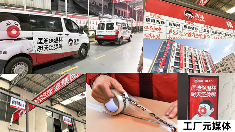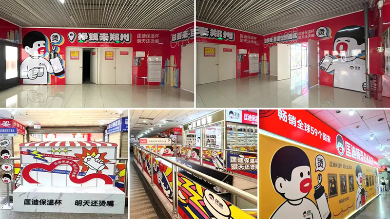 超級符號上門頭,讓它們在批發市場中成為最亮眼、最具吸引力的成交陣地,讓客戶的客戶也賺錢。當你走進批發市場,最先撲面而來的就是那醒目的匡迪保溫杯門頭。